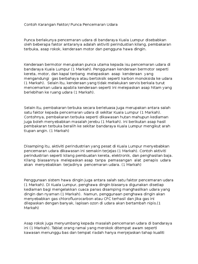 Salah satu contoh sumber pencemaran. Fakta atau kenyataan b. Anda boleh menggunakan contoh karangan di bawah sebagai panduan untuk membantu dalam penulisan karangan Bahasa Melayu.